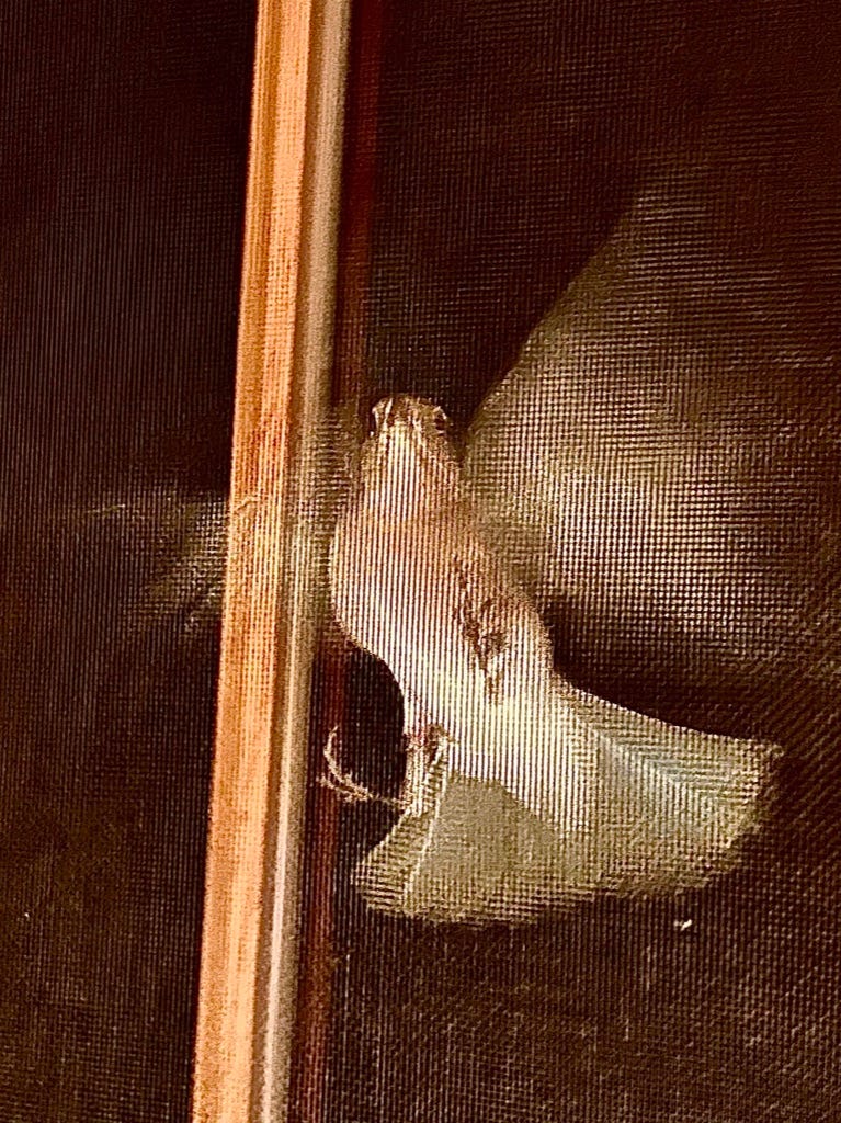 The bird was stuck inside my screened window, the wind was blowing strong — I saw her there, saw the terror in her eyes. I’d never seen a bird in distress that close up, and I thought, be still, I can get you out. Being still was not what this bird understood.